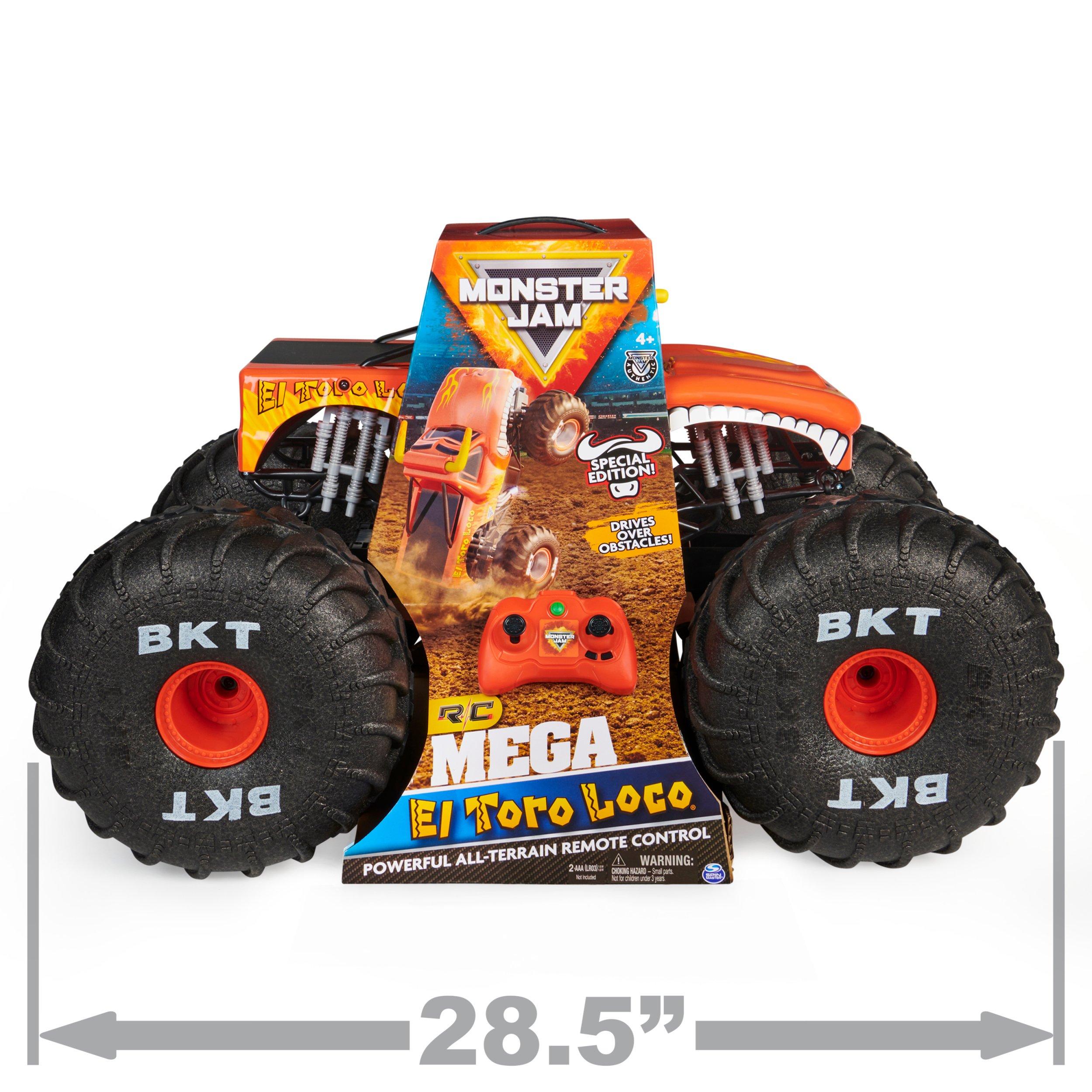 Tackle any obstacle and experience ultimate performance with the Monster Jam El Toro Loco RC! BUY NOW Overcome any obstacle with the biggest Monster Jam RC truck ever, the Mega Grave Digger! This powerful all-terrain remote control vehicle measures over two feet long and puts you in control of epic Monster Jam action! The Mega Grave Digger's oversized tires help you roll over anything, and keep on going! Featuring a custom rubber tread for. Monster Jam Grave Digger RC Monster Truck 1:64 Scale